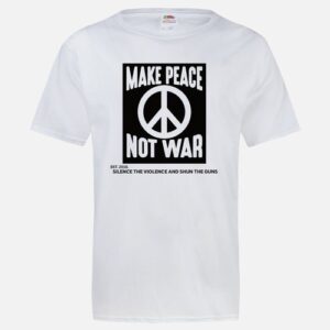 The statement "make peace not war" is especially echoed worldwide when there are wars. This message must be ongoing and other measures must be taken to avoid war. A consistent conversation ultimately leads to results. Visit the main Facebook page: www.facebook.com/silencetheviolenceandshuntheguns/ in the shop and photos section or the Canadian Facebook page: www.facebook.com/silencetheviolenceandshunthegunscanada/ in the photos section to see the entire line of items. Buy here!