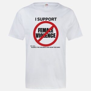 The standard Silence the Violence and Shun the Guns anti-violence against females t-shirt
